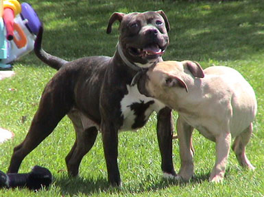 ![]() Belle with a big grin | ![]() Cocking her head to a squeaky ball |