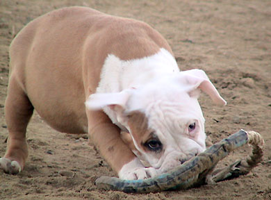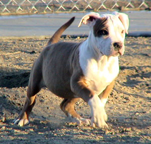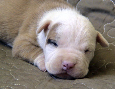 We love this girl, and she has that great temperament that her daddy throws. She sure does like to eat, and is always on the go :) Chance pictured at 11 wks | |