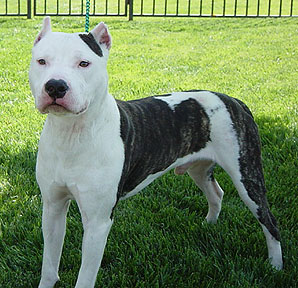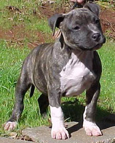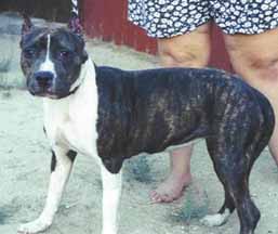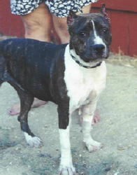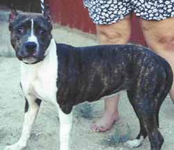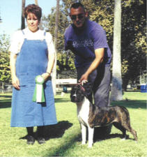 | Hots Shots Scarlett Letter gets a first place 6-12 puppy under judge Ruth Kramer, first time out, with heavy competition at the South Bay APBT Show; and again the following weekend under judge Richard Vail, a first place 6-12 puppy and reserve winners female, second weekend out, Tri City APBT show. Yeah Scarlett!! Thanks George for handling my pretty girl!! We co-own Scarlett with Hot Shot kennels. |
