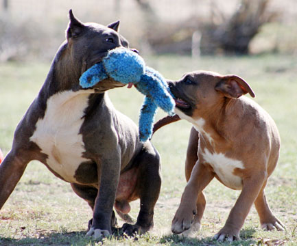 Juice and Blondie playing tug